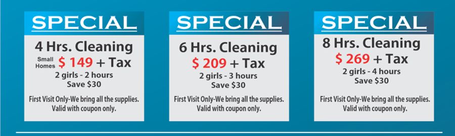 All of our prices are set to fit homes anything under 3,000 sq ft. If it is larger then the 3,000 sq ft any additional hour is $ 40.00.